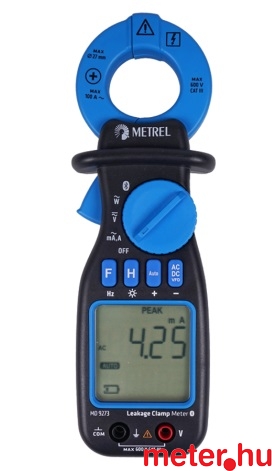 Szivárgóáram-mérő TRMS AC lakatfogó multiméter automatikus méréshatár választással. Fő funkciók: AC árammérés (100 A), feszültségmérés (600 V AC/DC), szivárgóáram mérése 0,01 mA felbontással, frekvenciamérés, teljesítménymérés, terjesítménytényező, harmonikusok vizsgálata, MIN, MAX, HOLD, PEAK funkciók, háttérfény, Bluetooth kapcsolat.
