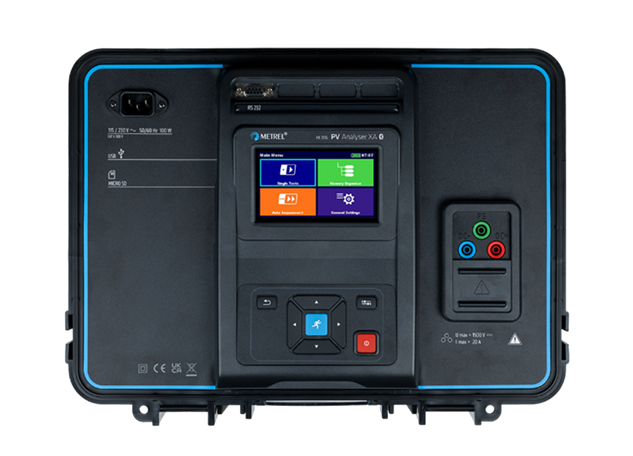 A Metrel legújabb, 2025-ben bemutatott műszere, az MI 3116 PV Analyser XA, kifejezetten a fotovoltaikus berendezések ellenőrzésére készült, és alkalmas a legkorszerűbb, bifaciális (kétoldalas) modulok vizsgálatára is. A készülék a nagy hatásfokú PV-modulok és a mindkét oldalon besugárzást hasznosító napelemek mérését egyaránt támogatja, többek között a megnövelt, 40 A-es méréshatárnak köszönhetően.